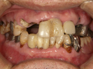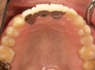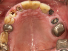 前歯のかぶせが壊れて右上の義歯を使われておらず、かみ合わせの歯が移動してスペースがなくなっていた。