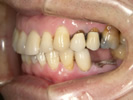 右上にインプラントを埋入し、全体の、かみ合わせの治療を行いバランスをとりました。