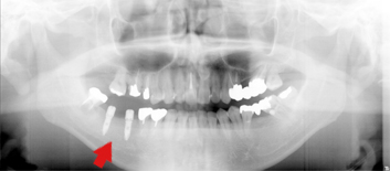 左下の奥歯が、C4(歯の根の部分だけ残った状態)で、インプラントを