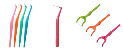 インプラントは自分の歯とは少し形態が異なることがあるので、歯ブラシ以外の清掃道具(②~④)を使っていただく場合があります。